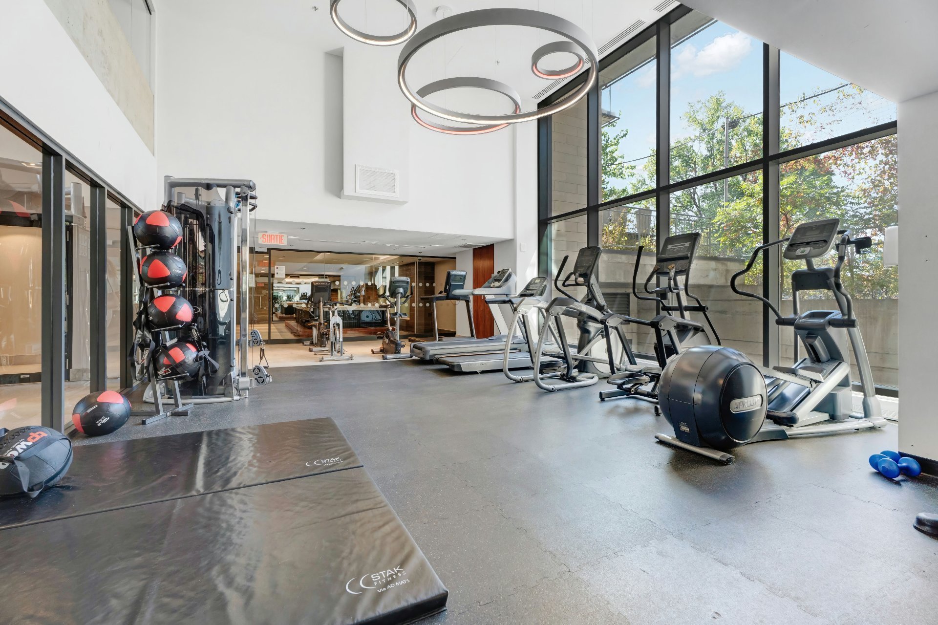 Sécurité 24 h/24, 7 j/7; Rangement pour vélos; Salle d'entraînement; Piscine intérieure; Jacuzzi; Jardins intérieurs paysagers; Terrasse commune sur le toit avec BBQ