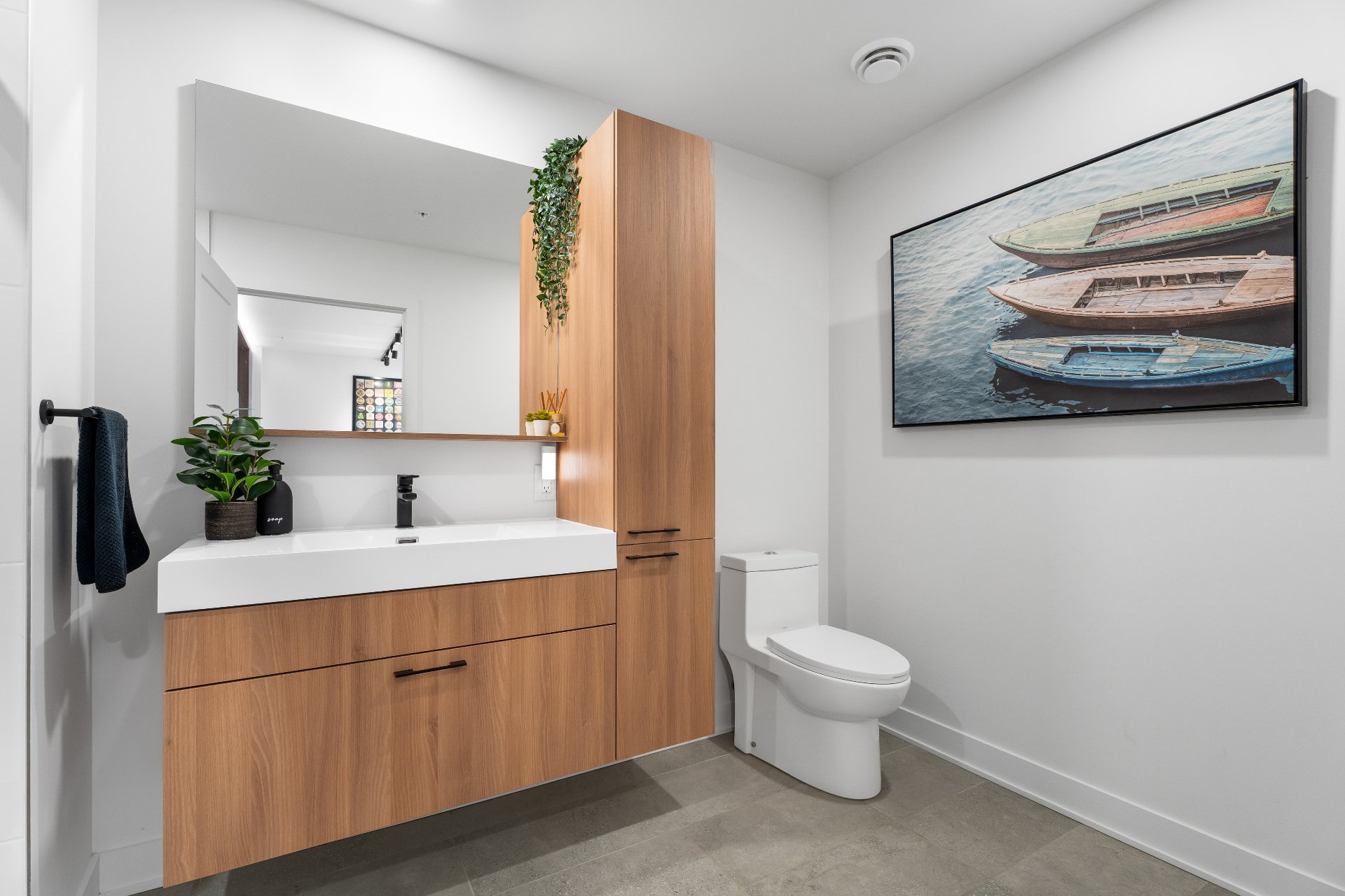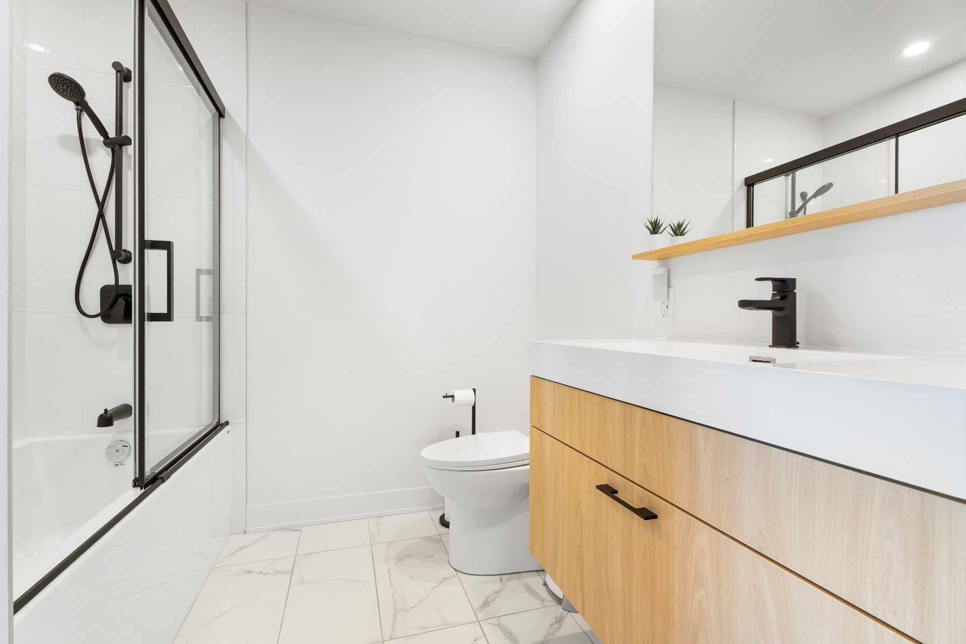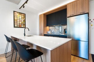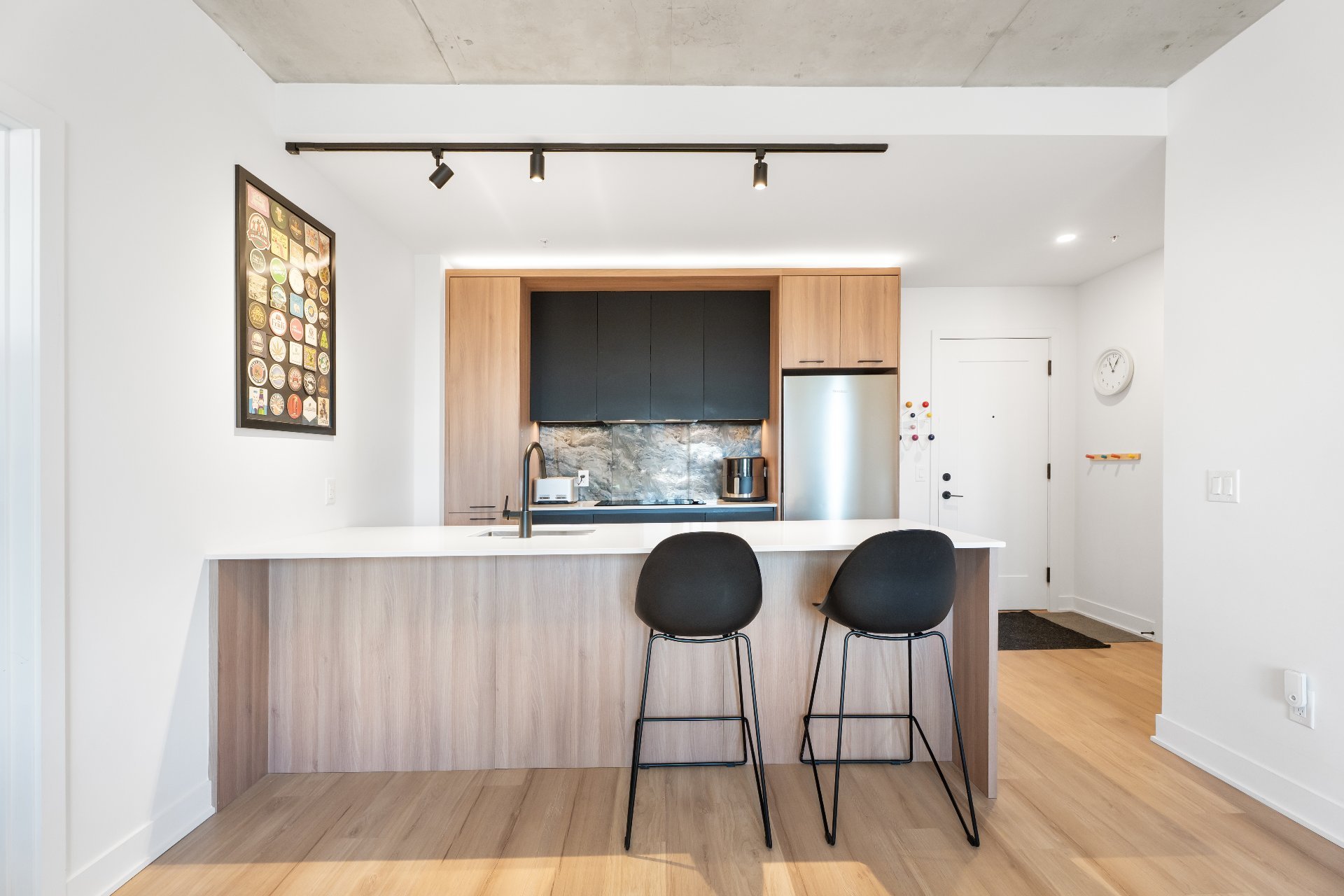 FLEMING SUR LE PARC (LaSalle) -- Tout neuf! Condo moderne avec plafonds de 9 pi, 2 chambres à coucher, 2 salles de bain complètes et une cuisine élégante avec îlot central et dosseret raffiné. Aire de vie lumineuse donnant sur une grande terrasse privée pour profiter des journées ensoleillées. Inclus : espace de rangement S1-4 et stationnement intérieur S1-4 avec borne de recharge privée dédiée pour voiture électrique.